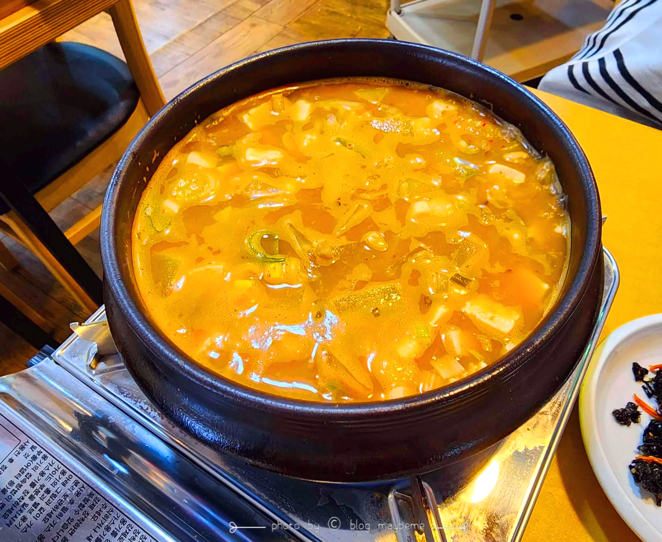 청국장 3인분양이 생각보다 많아서 4명에서 먹기에도 충분했어요. 청국장향도 많이 나지 않고 맛있었어요. 두부도 많이 들어있고 걸쭉하지 않았어요. 맵지 않고 고소하게 잘 먹었던 것 같아요.