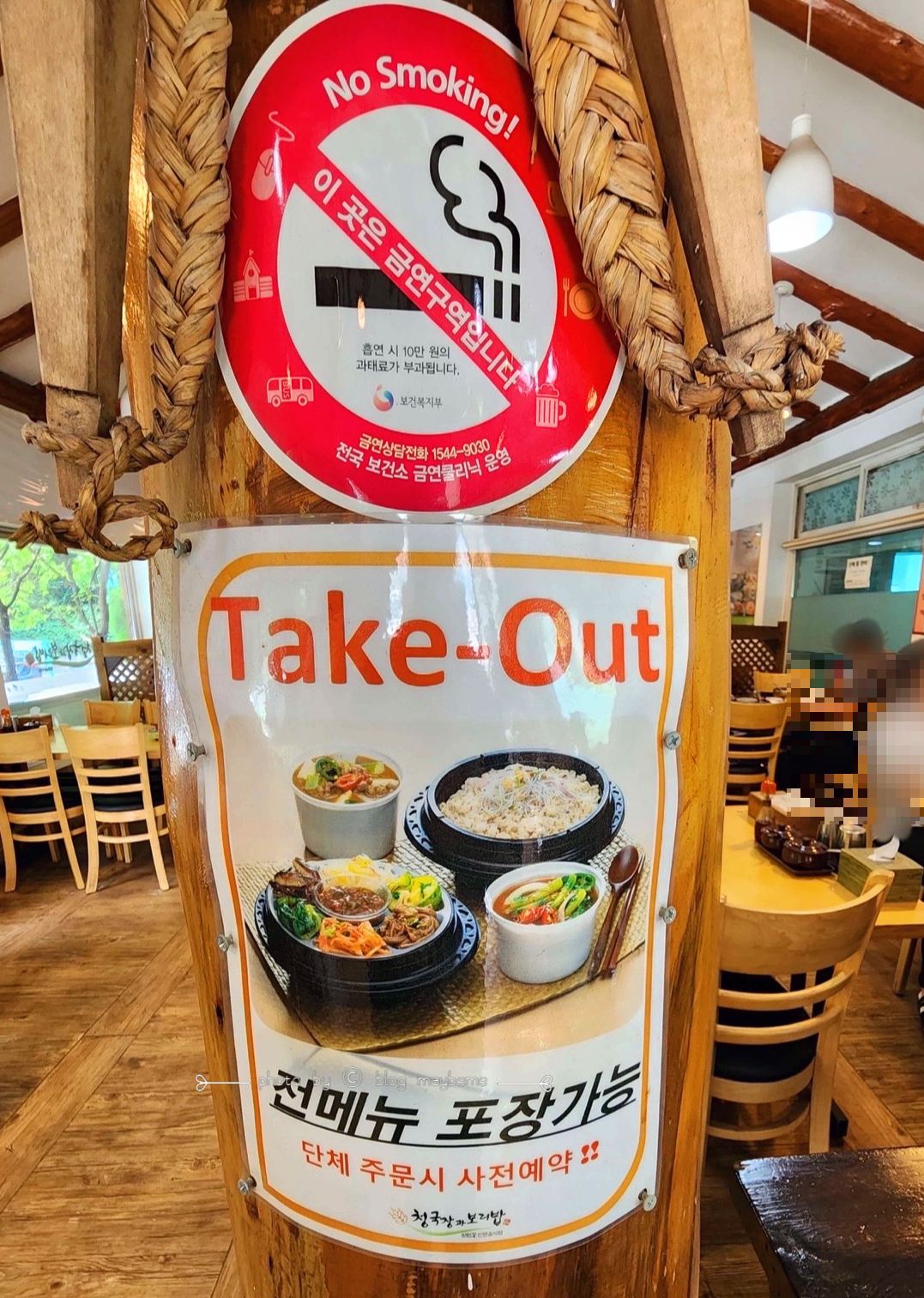 전메뉴 포장이 가능하다고 해요. 그리고 금연구역 식당이어서 더 맘에 듭니다. 포장은 단체 주문 시 예약은 필수라고 하네요.