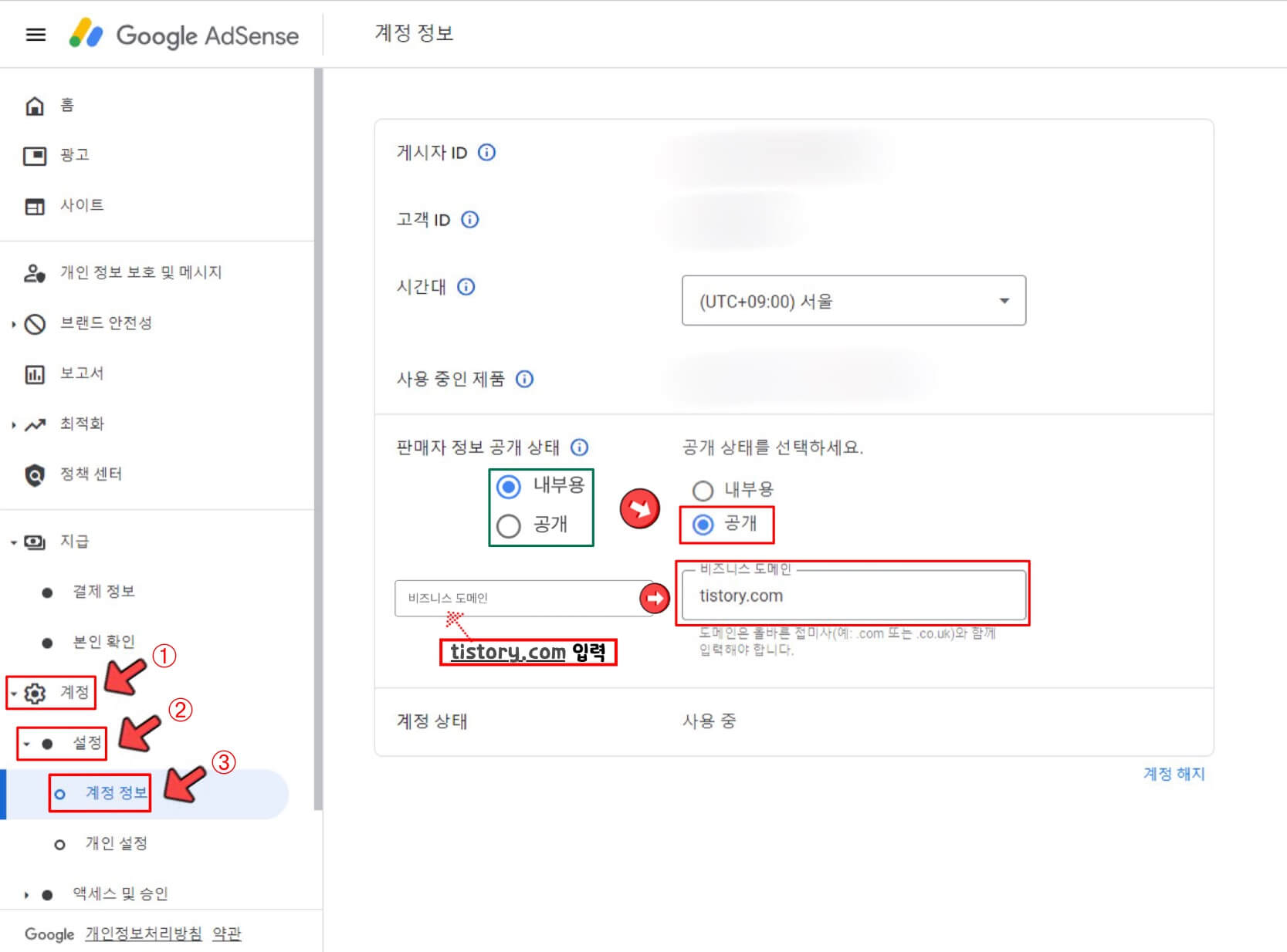사진처럼 빨간 문구창 밑에 노란색으로 '판매자 정보를 Google sellers.json 파일에 게시하시기 바랍니다. 현재 공개 상태를 검토하려면 계정 설정 페이지를 방문하세요.'라는 문구도 같이 보셨을 텐데요, 이 노란색 창을 해결하면 빨간색 창도 같이 해결할 수 있습니다. 고객센터 방문을 원하시는 분들은 고객센터를 방문하셔도 됩니다. :D