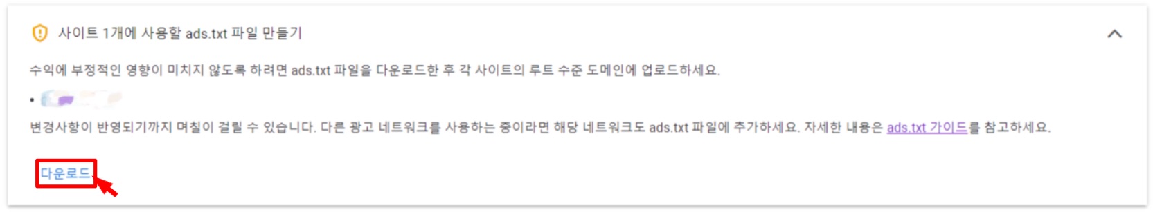 - 페이지가 넘어가면 '사이트 몇 개에 사용할 ads.txt 파일 만들기'가 나오고 밑에 '다운로드'를 보실 수 있어요.