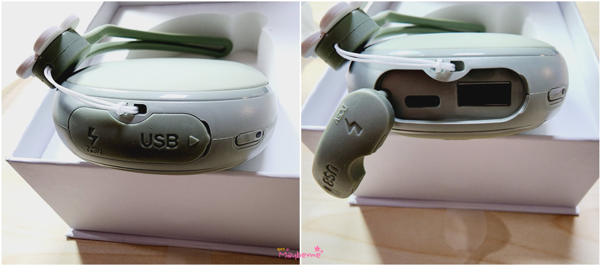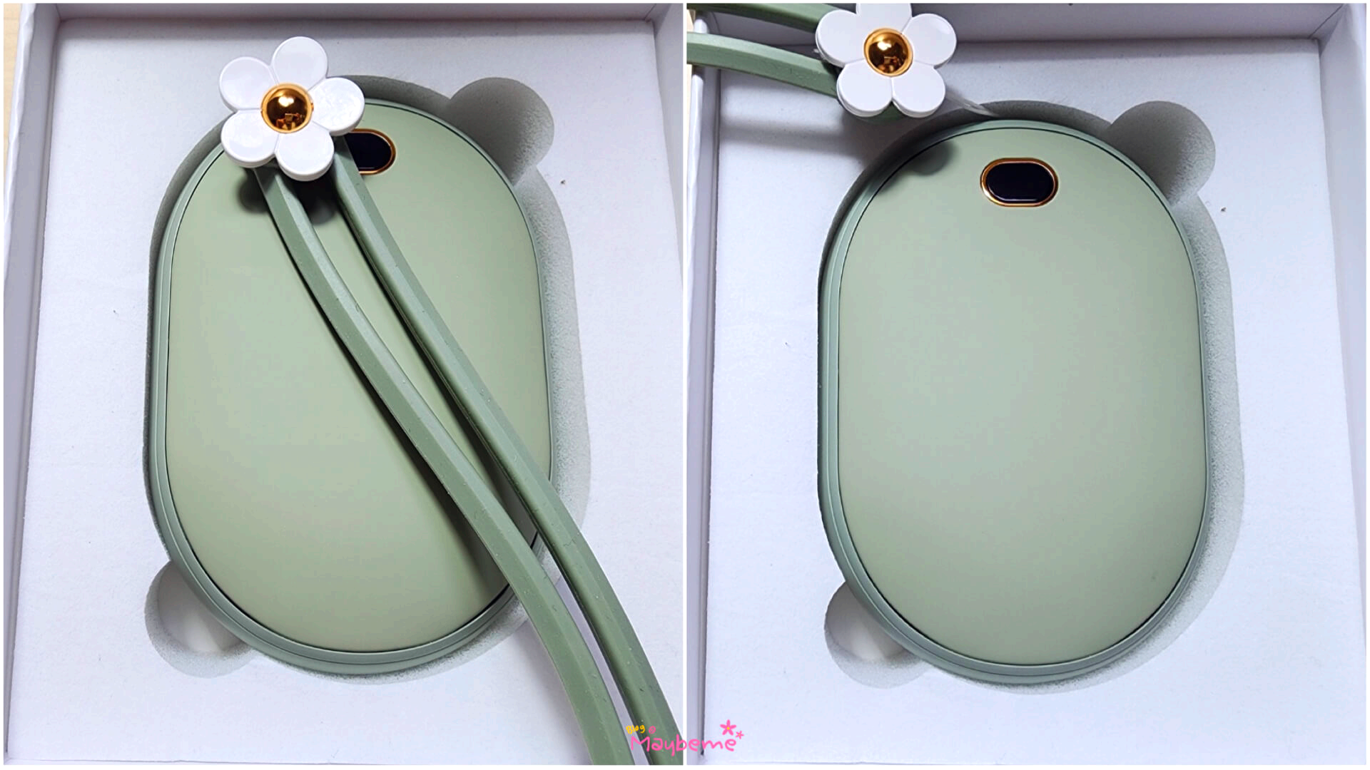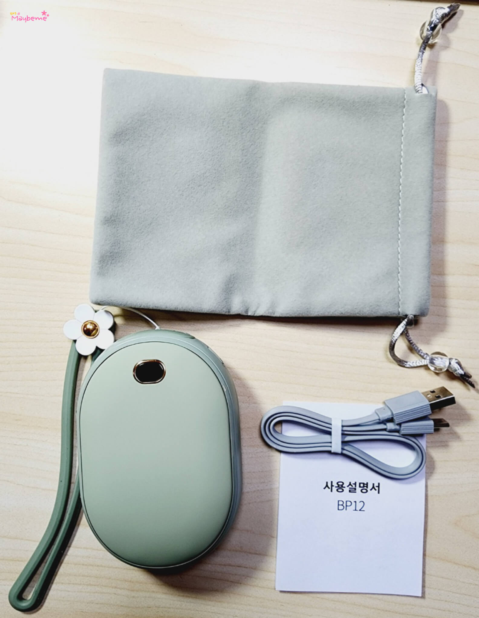 색깔은 피스타치오 그린, 벚꽃 핑크, 쿨 화이트 이렇게 3가지 있어요. 저는 피스타치오 그린으로 구매했어요. 개인적으로 분홍색 계열을 좋아하는데 아이리스 손난로 구매하기 전에 급하게 구입한 다른 충전식 손난로 색이 분홍이어서 피스타치오 그린으로 선택했어요. 파스텔 톤의 색이어서 더 마음에 들었어요. 디자인은 마음에 들어도 색깔이 맘이 들지 않으면 구매할 때 고민을 하게 되는데 원하는 톤의 색이 있어서 고민하지 않았어요.