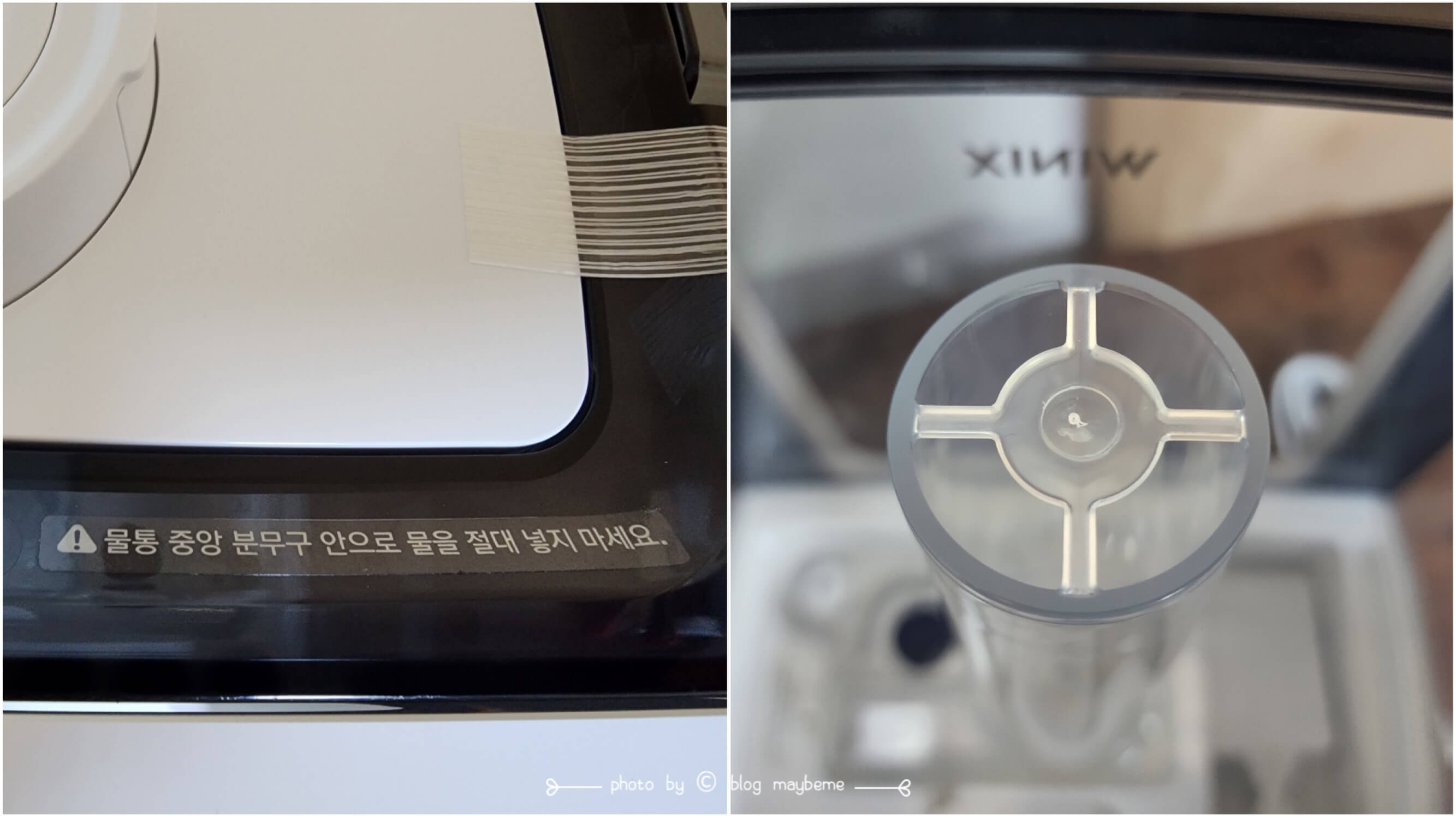 위생적으로 사용하기 위해서는 세척도 중요합니다. 가습기를 구매하기 위해 찾아보고 직접 보기도 했는데 세척이 어려운 가습기들이 의외로 많이 있었어요. 물을 넣는 입구가 작아서 손이 들어가지 않다던 거 물통이 분리되지 않아서 세척을 하다가 물이 들어가면 안 되는 부분까지 들어갈 수 있어서 세척이 편리한지도 조건에 넣었어요. 다행히 위닉스 올바른 가습기는 물통의 입구도 넓고 물통 분리도 쉽게 할 수 있었습니다. 하지만 본체를 세척해야 할 때는 좀 조심해야 하기는 합니다. 세척솔이 따로 있지 않아서 본체는 물을 빼고 마른 수건으로 여러 번 닦아서 세척했어요. 세척은 1주일에 1번씩 해주고 있습니다.