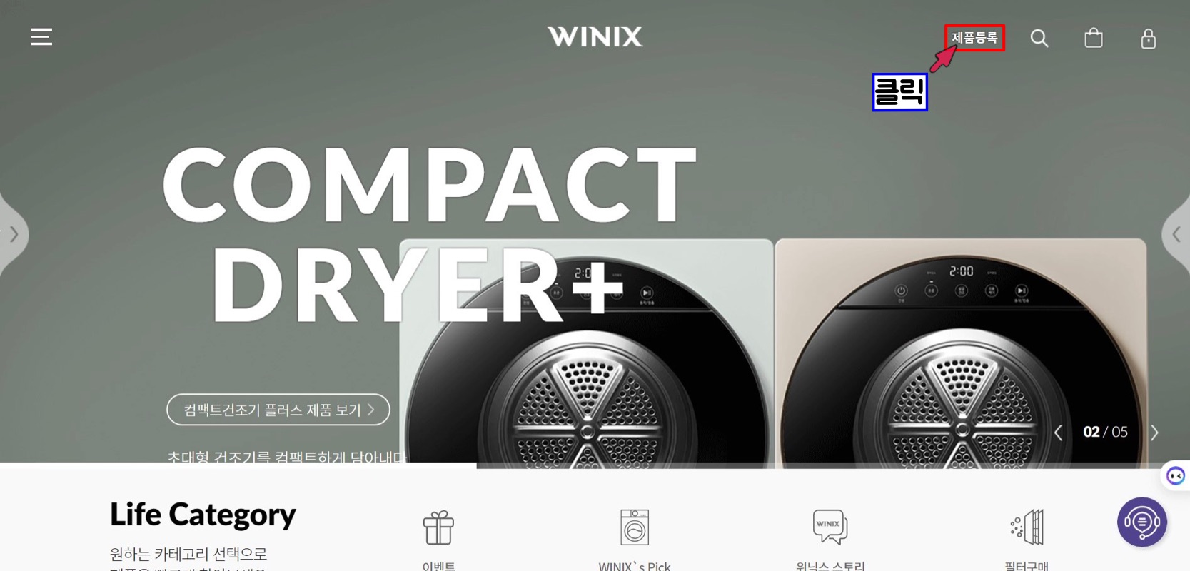 - 위닉스 홈페이지 들어가기