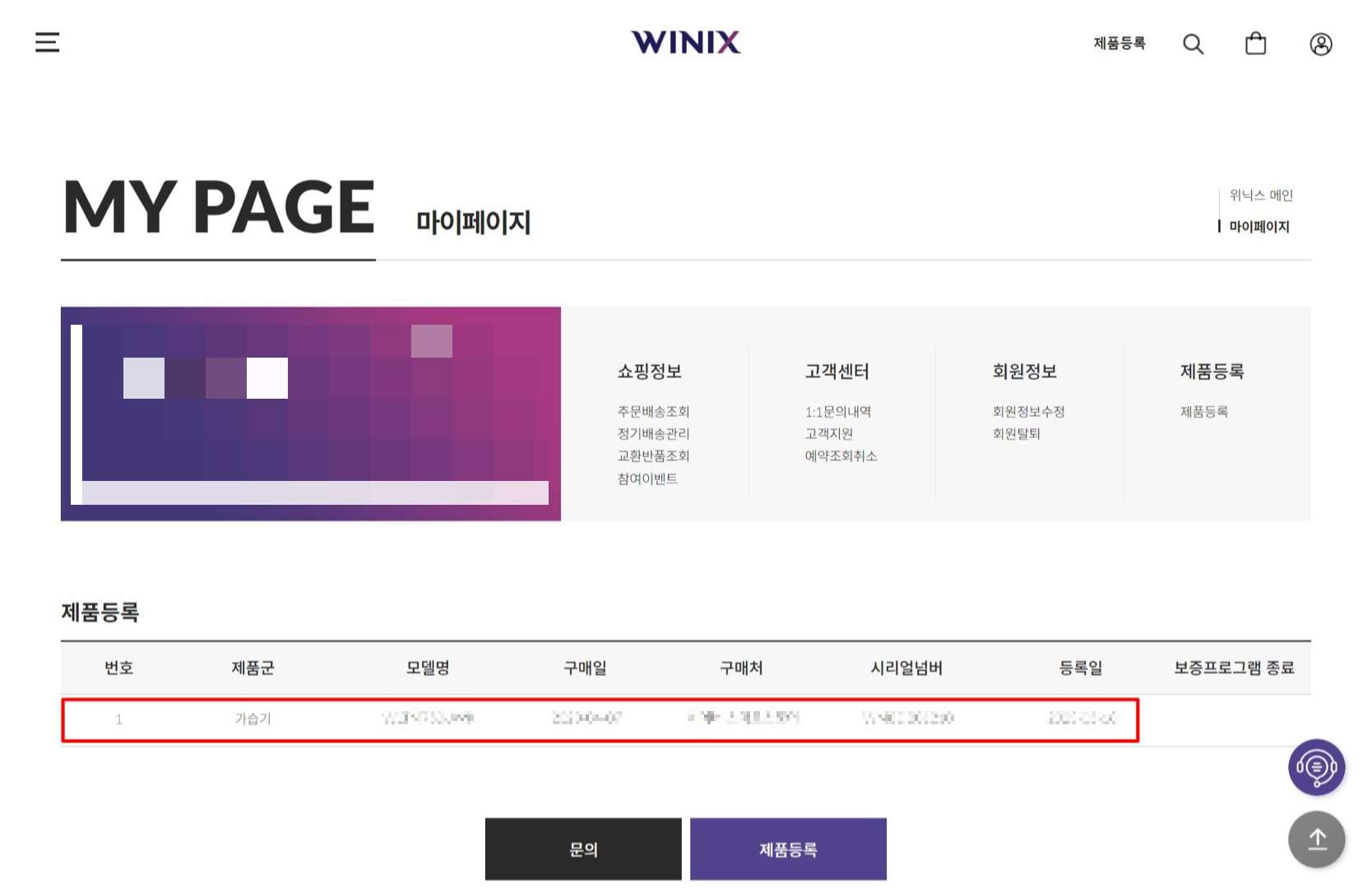 - 제품등록 확인하기