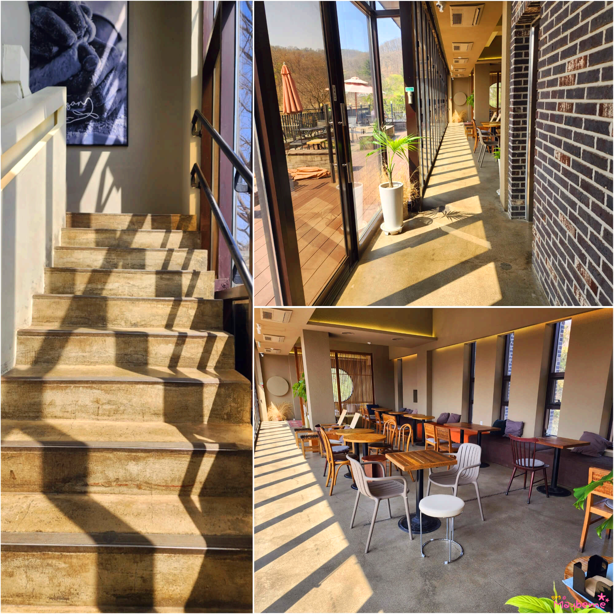 2층에도 자리가 있어요. 밖에 있는 테라스를 사용해도 되고 안쪽 자리를 사용할 수 있어요. 분위기도 생각보다 좋은 것 같아요. 다음에는 2층도 사용해 봐야겠어요.