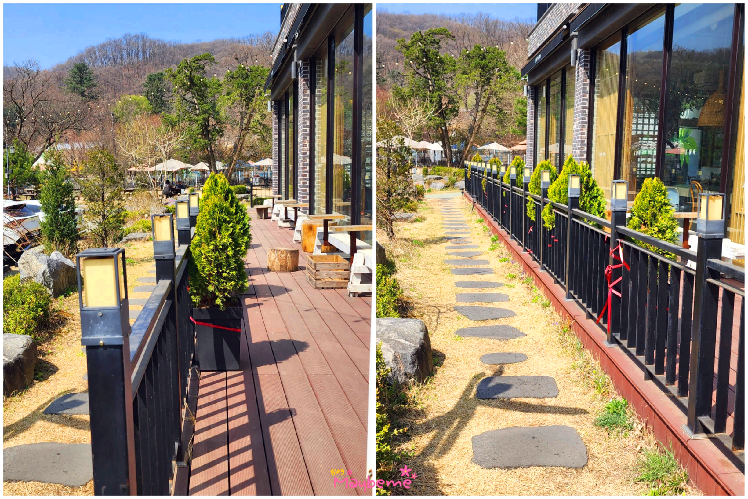 주차장을 가로지르면 넓은 공간의 야외공간이 있어요. 날씨 좋은 날 넓은 야외 공간에서도 빵과 음료를 즐길 수 있고 휴식도 가질 수 있어요. 저는 저희 강아지와 함께 야외 자리에서 휴식을 갖았던 좋은 기억이 있어요.