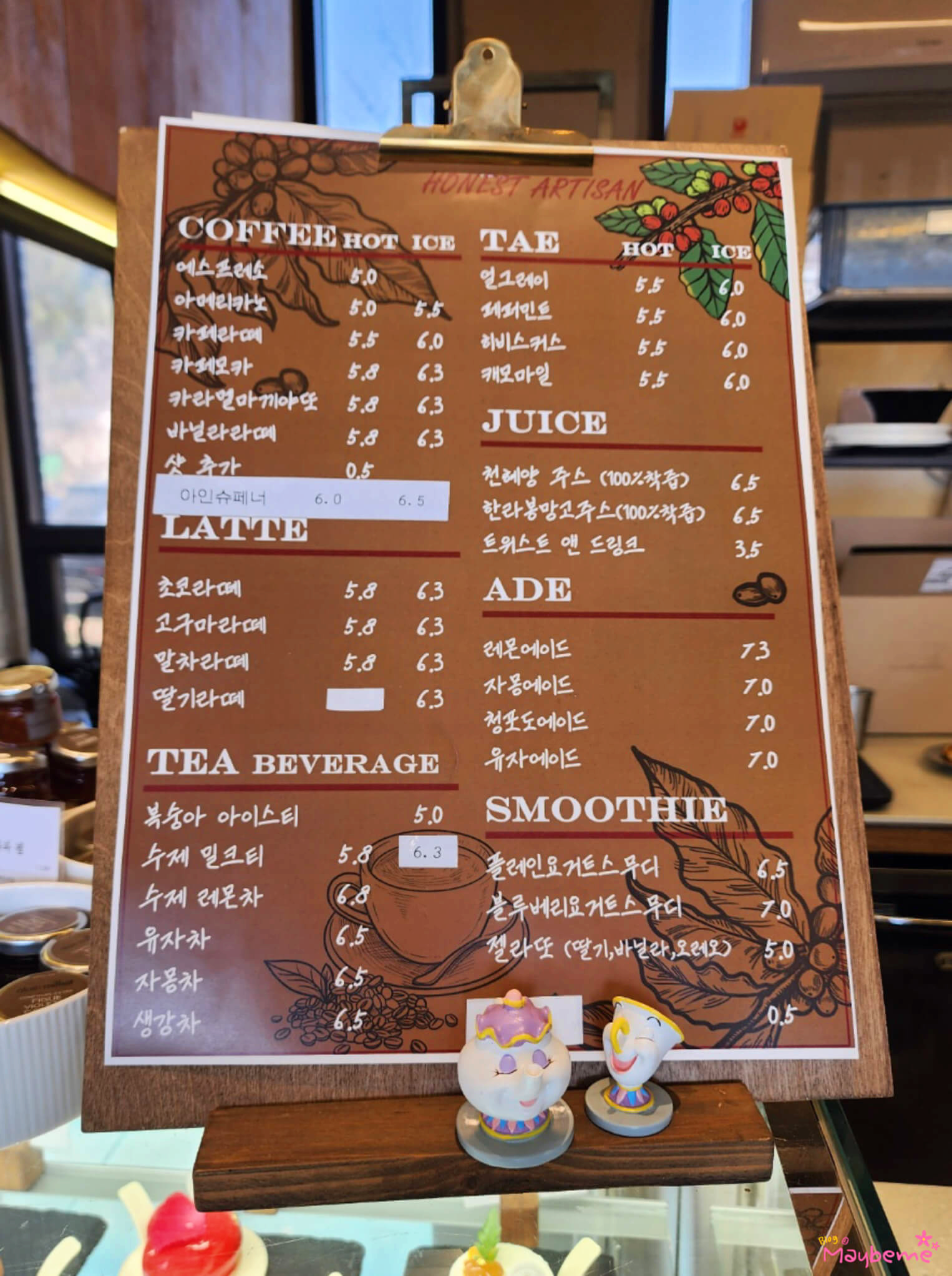계산대에 있는 음료메뉴판도 있어서 가까이 볼 수 있어요.