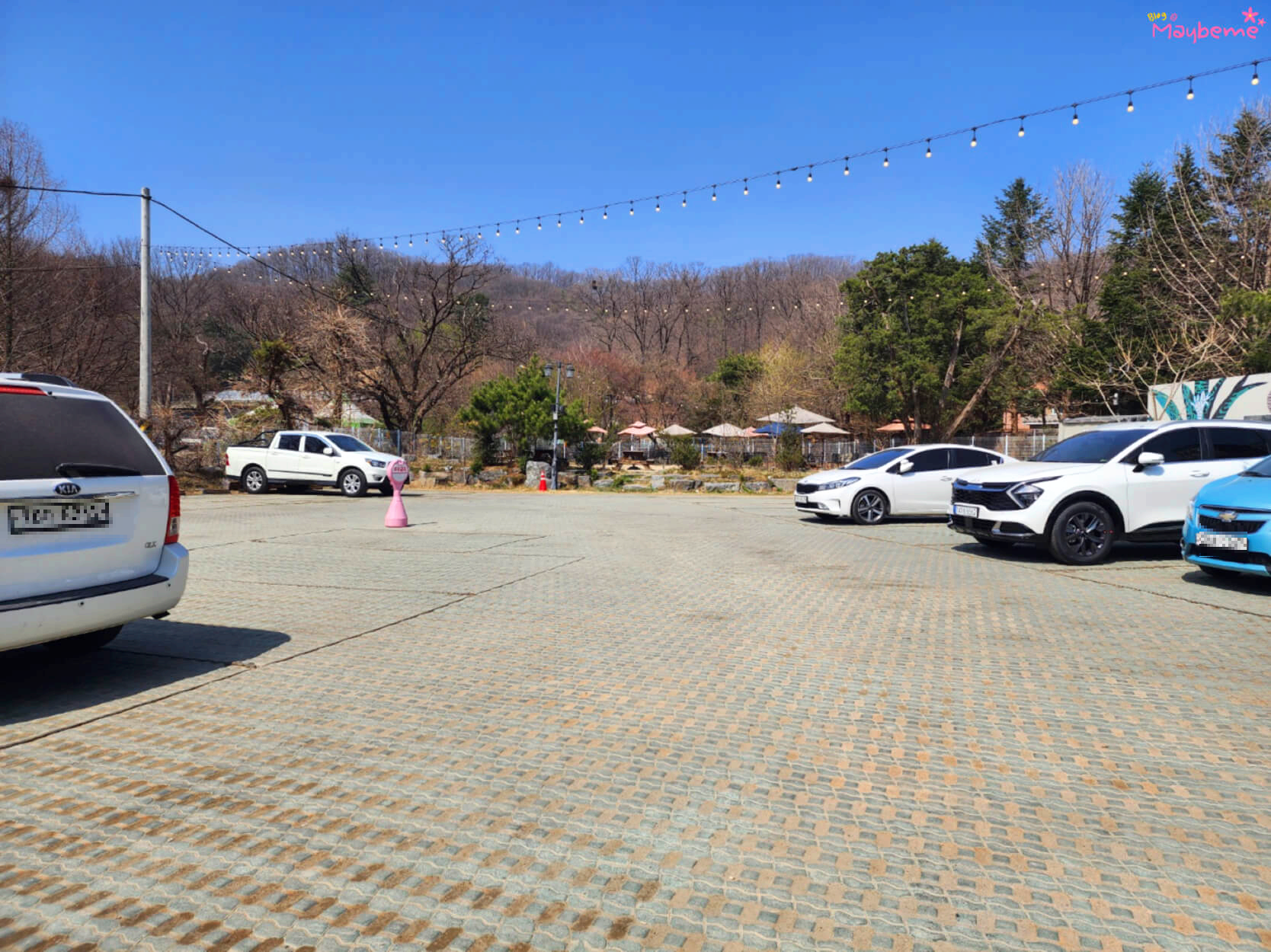 건물 앞쪽은 넓은 주차장이 있어 넉넉하게 주차가 가능합니다. 사람이 많을 때 가득 차기도 하지만 자리가 금방 나기도 해요. 넓은 공간이어서 주차를 편하게 할 수 있어 좋은 것 같아요. 근데 도보로는 가기 쉽지 않은 곳인 것 같아요. 그래서 차를 타고 방문해요.