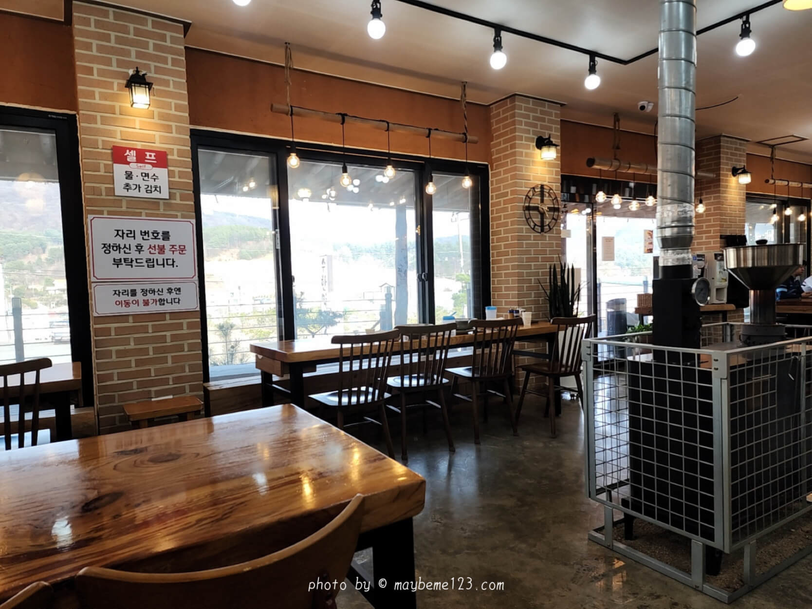 창가를 바라보면서 먹을 수 있는 테이블도 있어요. 창가를 바라보면서 먹는 자리는 최근에 없어졌어요. 난로가 없어지고 자리가 더 생기면서 방향을 바꾼듯 합니다.