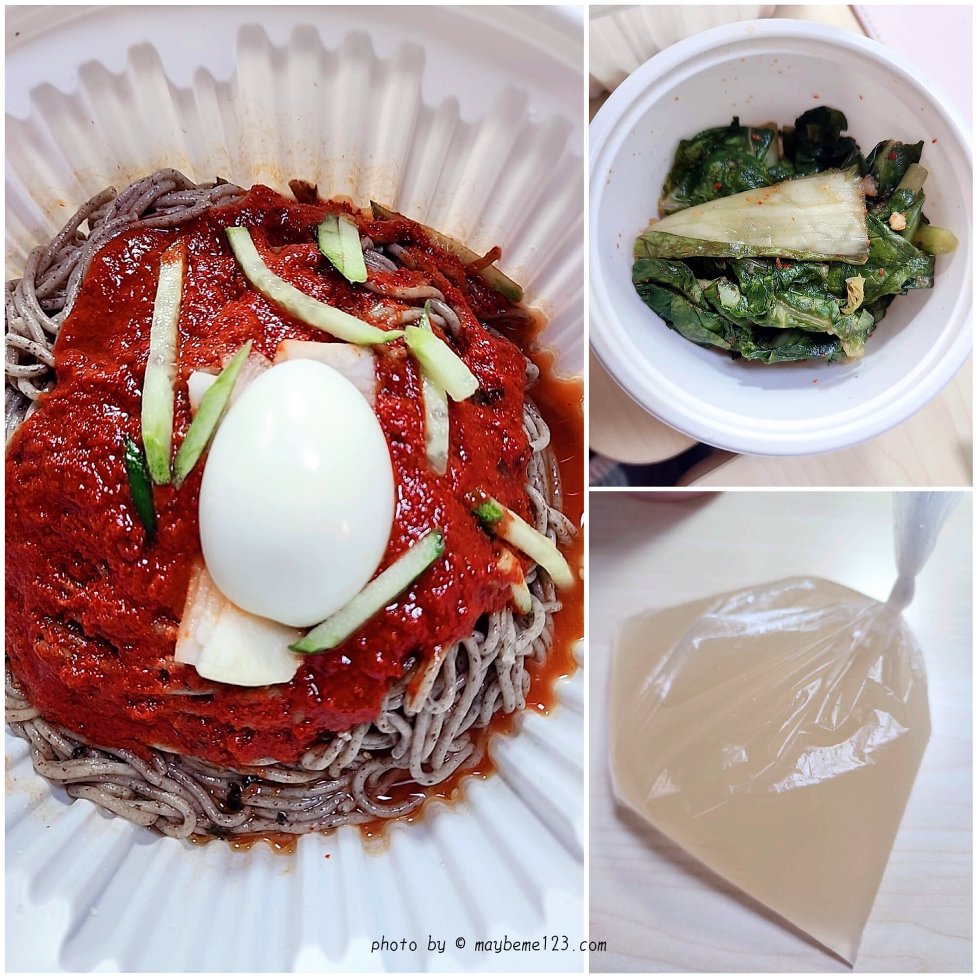 포장을 해서 가져올 때도 종종 있는데, 배달은 안 되는 것 같아요. 전화로 주문하면 금방 되더라고요. 기다리지 않고 한 10~15분 이내로 가져올 수 있어요. 포장하면 열무김치와 육수도 함께 포장을 해줍니다. 필요한 만큼 육수를 부어서 먹으면 맛있게 먹을 수 있어요.