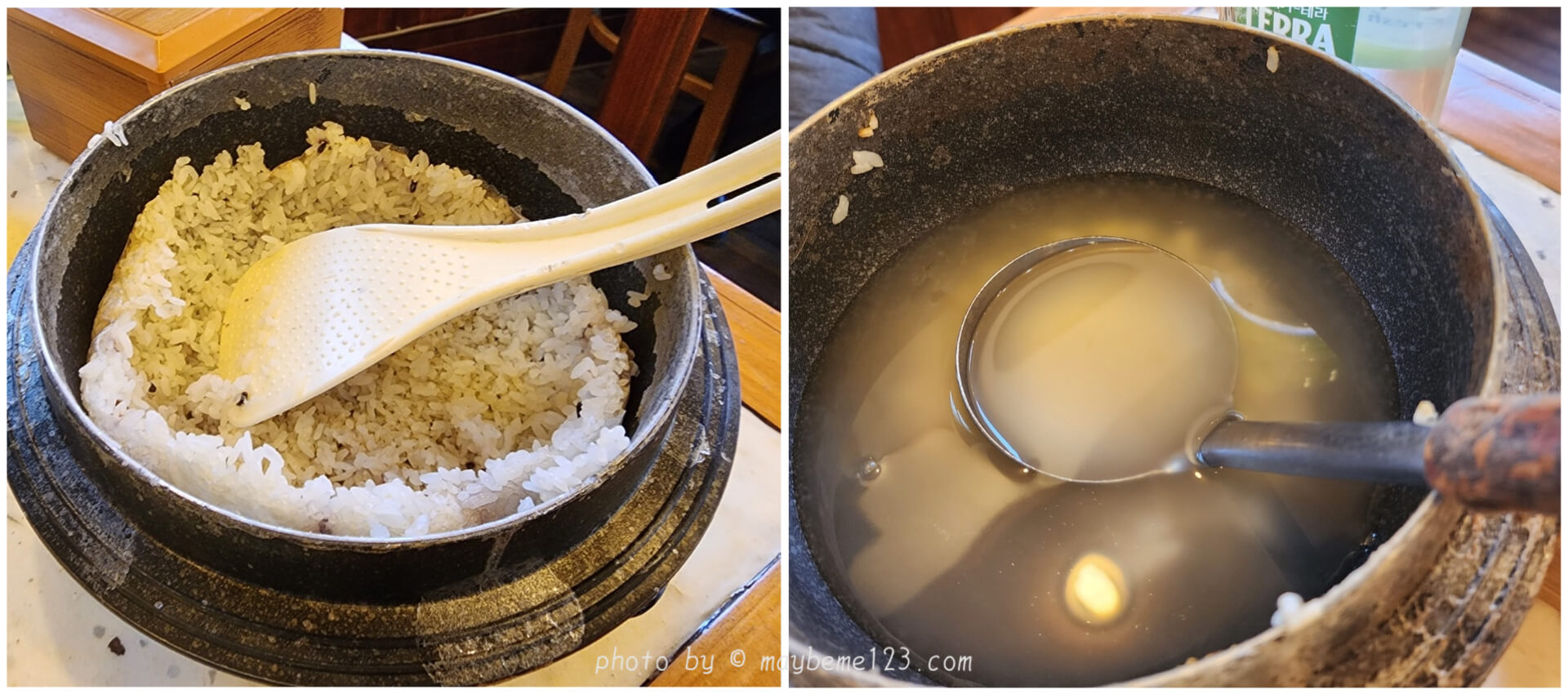 - 솥밥에 밥을 뜨고 누룽지를 끓여서 다시 갖다 줘요.
