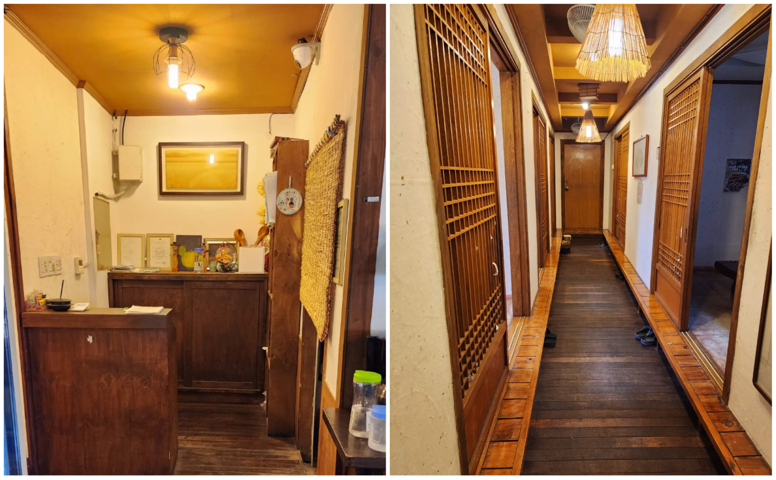 식당 안으로 들어가는 입구는 나무 문으로 되어 있어 옛날 집을 연상시켰어요. 옛날 시골스러운 분위기에요.