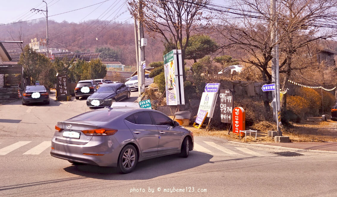 '앵두나무우물가에' 들어가는 곳이에요. 입구로 들어가면 식당 앞쪽에 주차장이 넓게 있어요. 주차 공간이 넓어서 넉넉히 주차 가능해요.