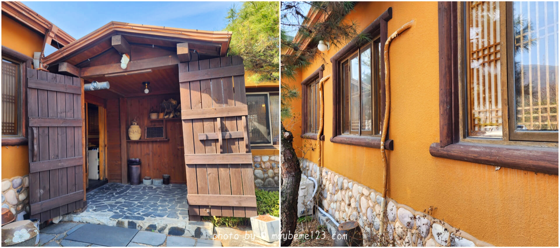 식당 안으로 들어가는 입구는 나무 문으로 되어 있어 옛날 집을 연상시켰어요. 옛날 시골스러운 분위기에요.