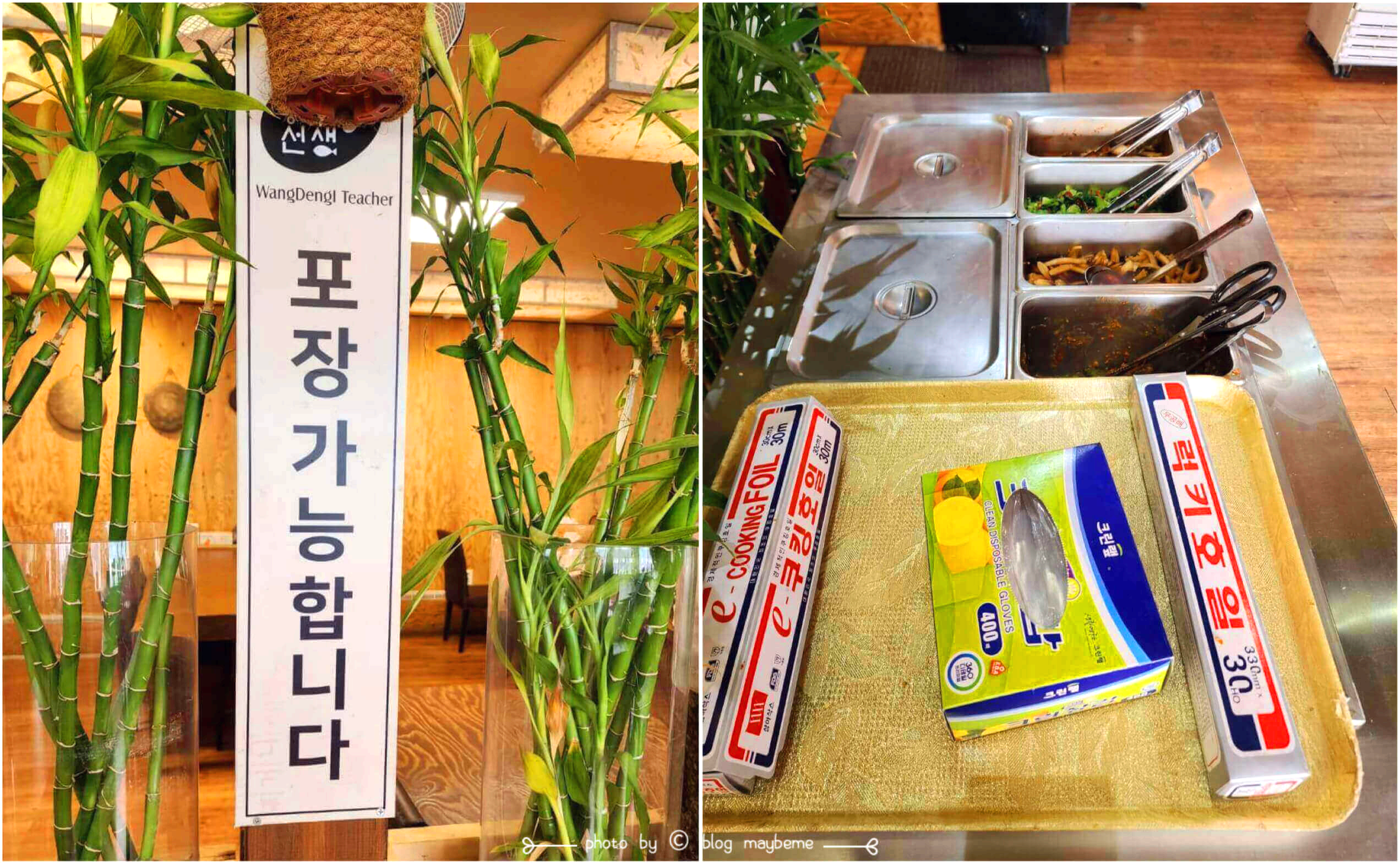 포장이 가능하다고 해요. 반찬을 뜨는 곳에는 포일과 비닐장갑도 비치되어 있습니다.