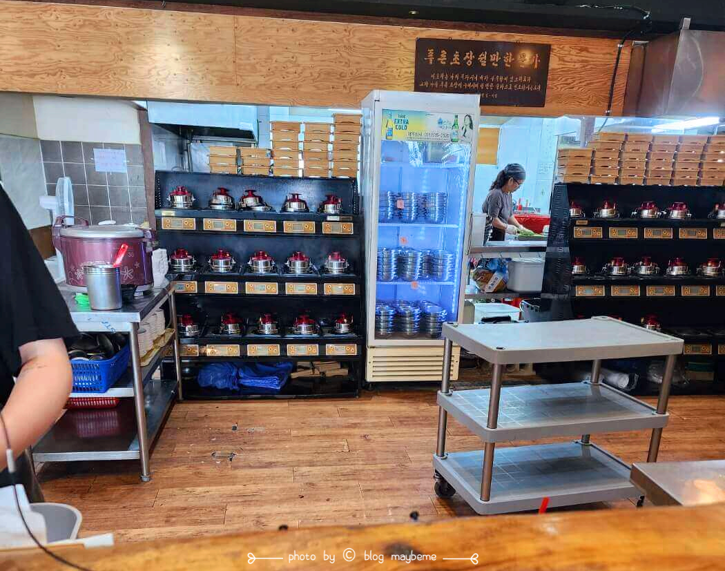 계산하는 곳 뒤쪽으로 주방 쪽에 솥밥을 만드는 곳이 있어서 나름 신기해서 찍어봤어요. 솥밥을 불에 올려서 하는 게 아니고 솥밥을 만드는 밥솥 기계가 있었네요.