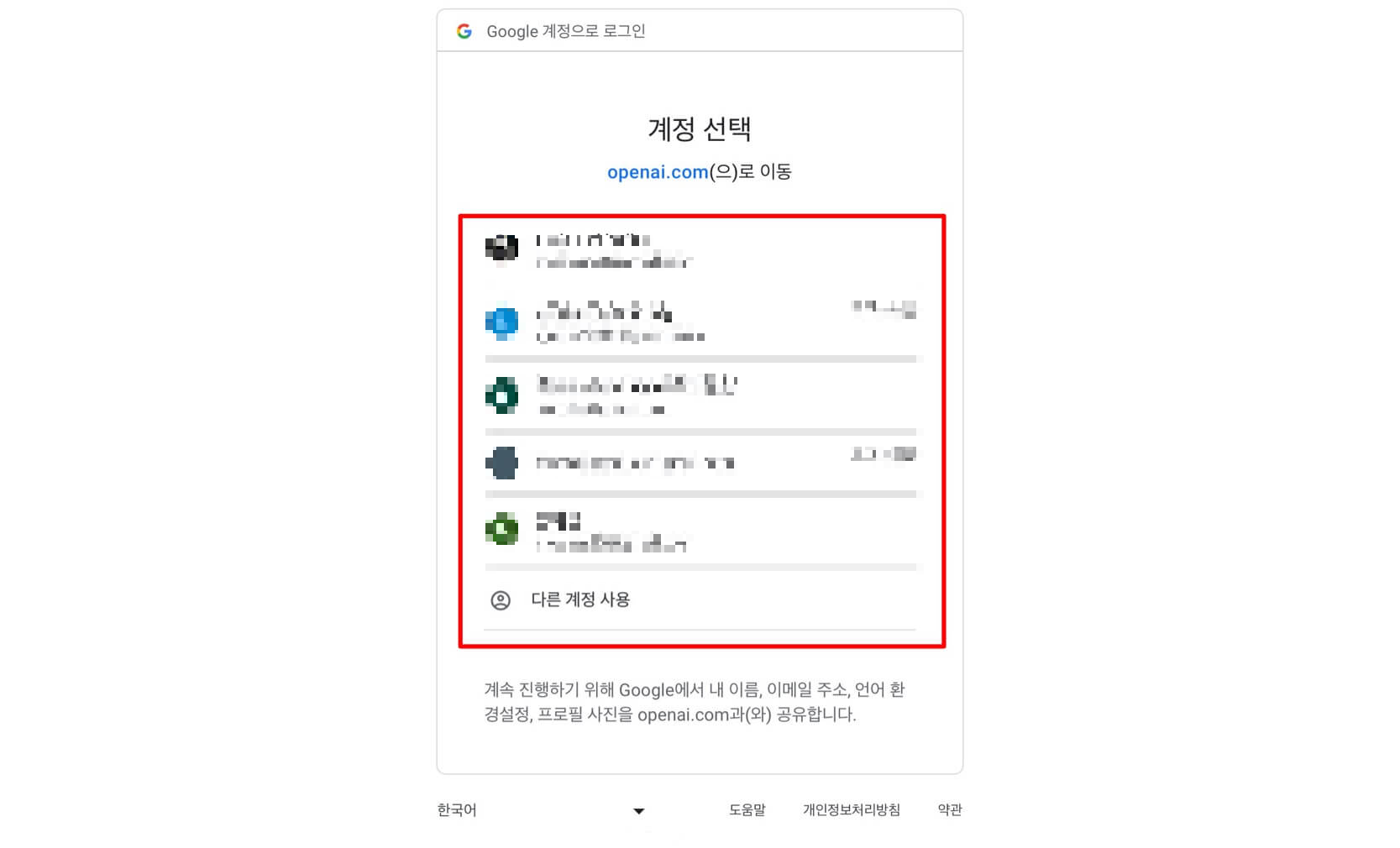 4. 가입하려는 구글 계정을 입력하거나 선택합니다.