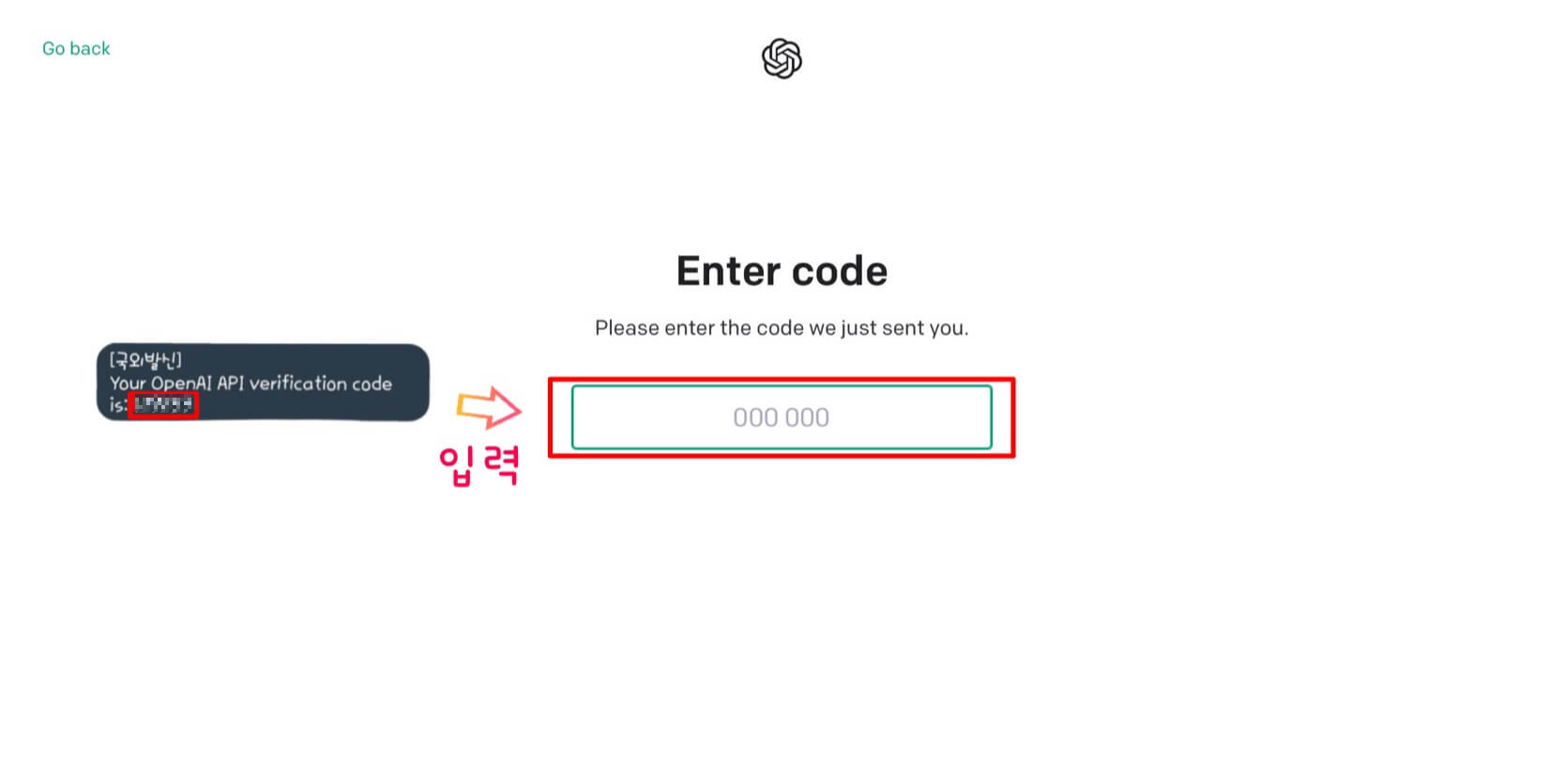 7. 메시지로 온 코드 6자리 입력합니다.