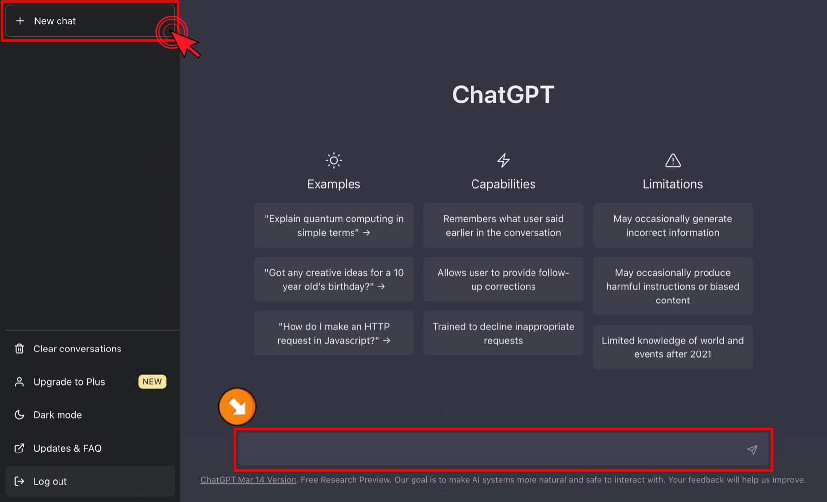 8. ChatGPT와 대화를 시작합니다. New chat를 눌러서 해도 되고 밑에 있는 창에 궁금한 점을 입력하며 시작합니다.