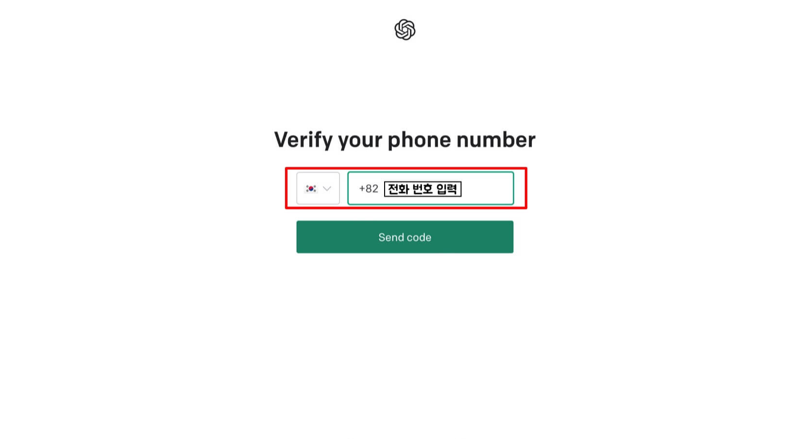 6. 국가를 선택하고 전화번호를 입력하고 코드 보내기를 합니다.
